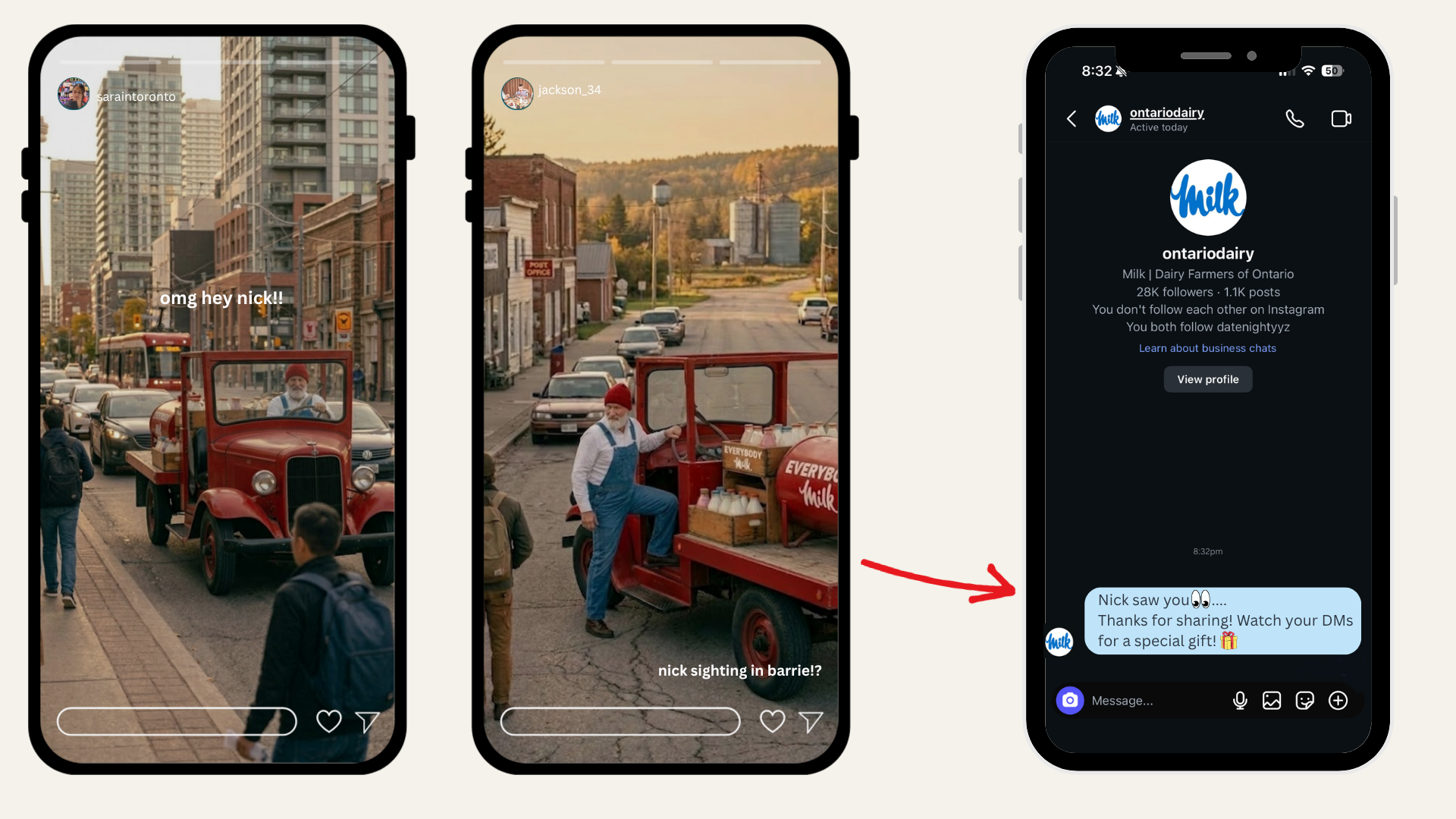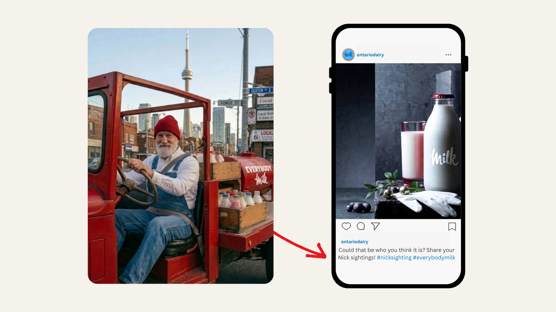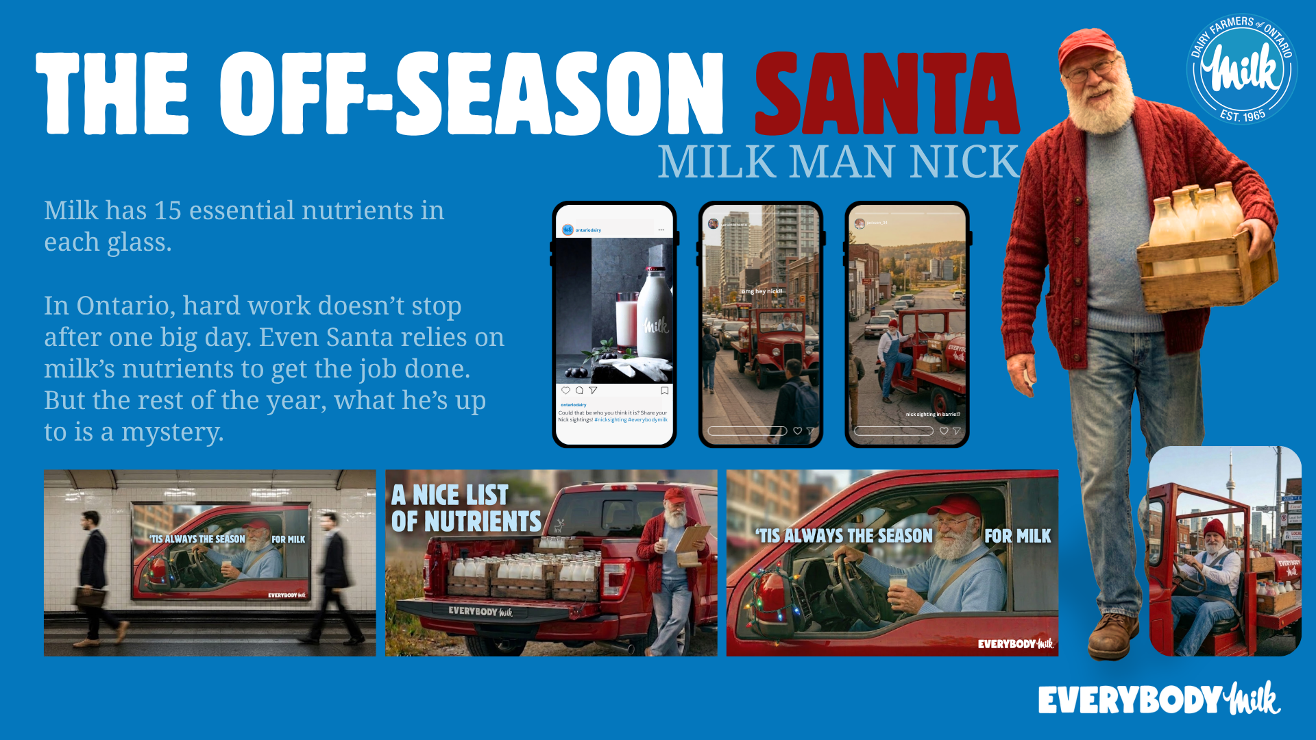 Milkman Nick will be delivering milk to partnering cafes across Ontario with DFO encouraging people to share their Nick sightings as a campaign for social amplification.